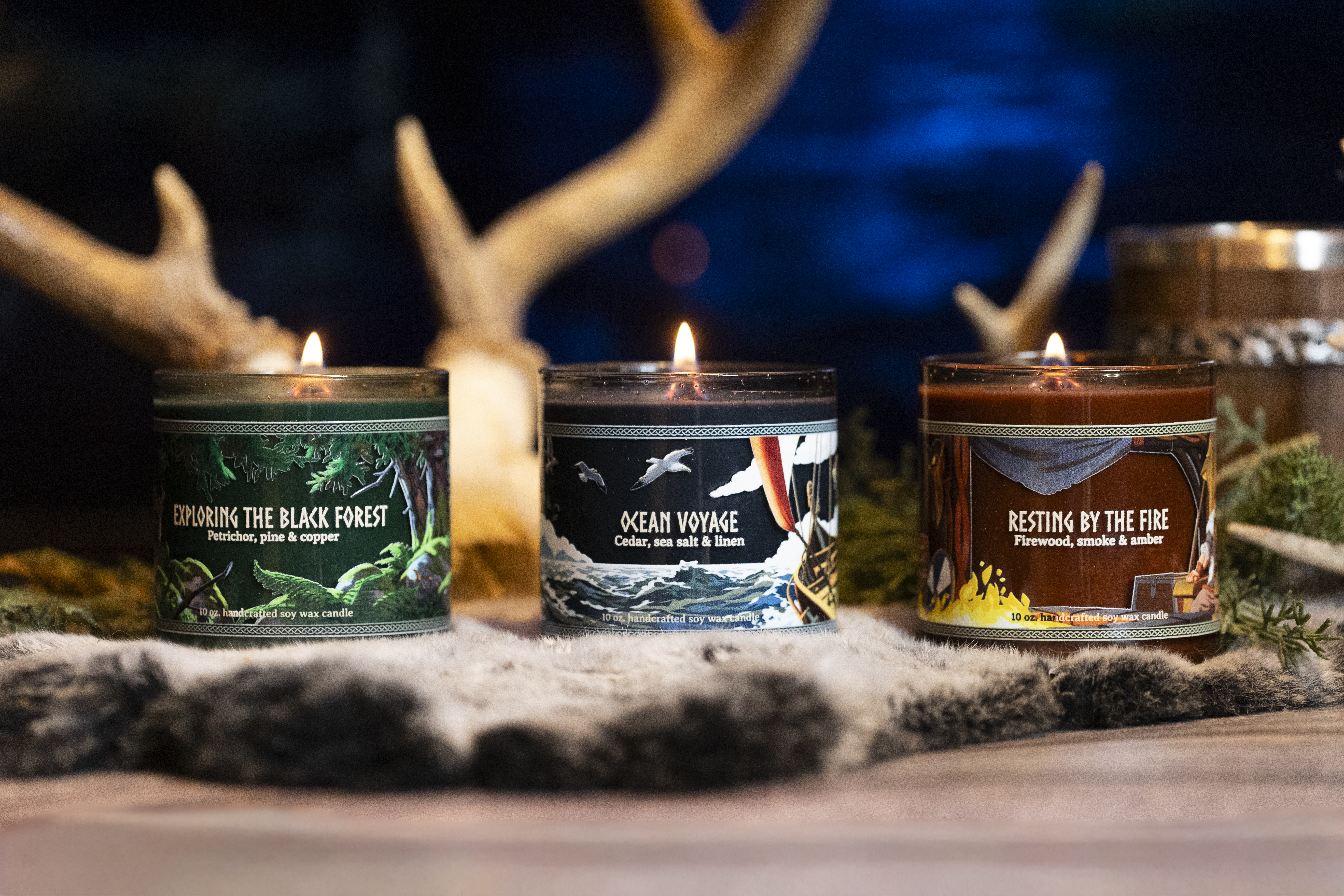 We have also teamed up with the talented folks at Cantrip Candles, who have made a lovely set of Valheim themed scented candles! There’s one for the black forest, one for the ocean, and one for the campfire – and they all come with labels illustrated by Mats Minnhagen. These are also discounted at the moment, so now is a great time to grab them if you want them!